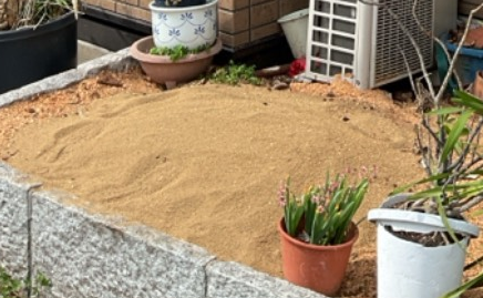 残りは 又 生えてくることを心配されたため、穴あけ、薬剤注入、防草シート、土の4連コンボを実施。