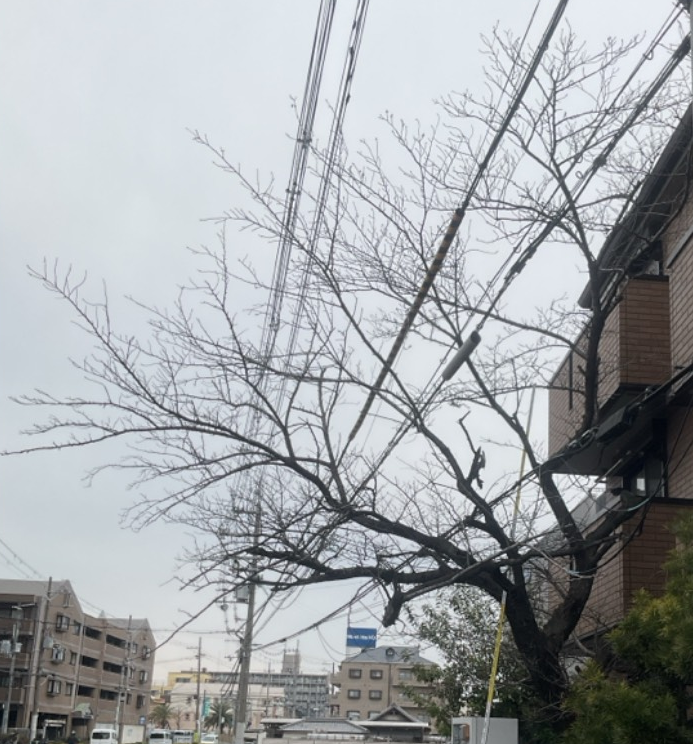 尼崎市 桜の伐採 電線にかかった危険木を安全に処理