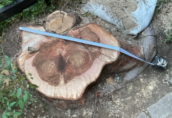 絶対に枝幹は落とせません!1日9時間で作業は無事完了。直径80cmありました。