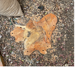 伐根は10cmくらいの直径ですが、ある程度の年数をたつと 四方に40-50cm根が張ることもざらです。